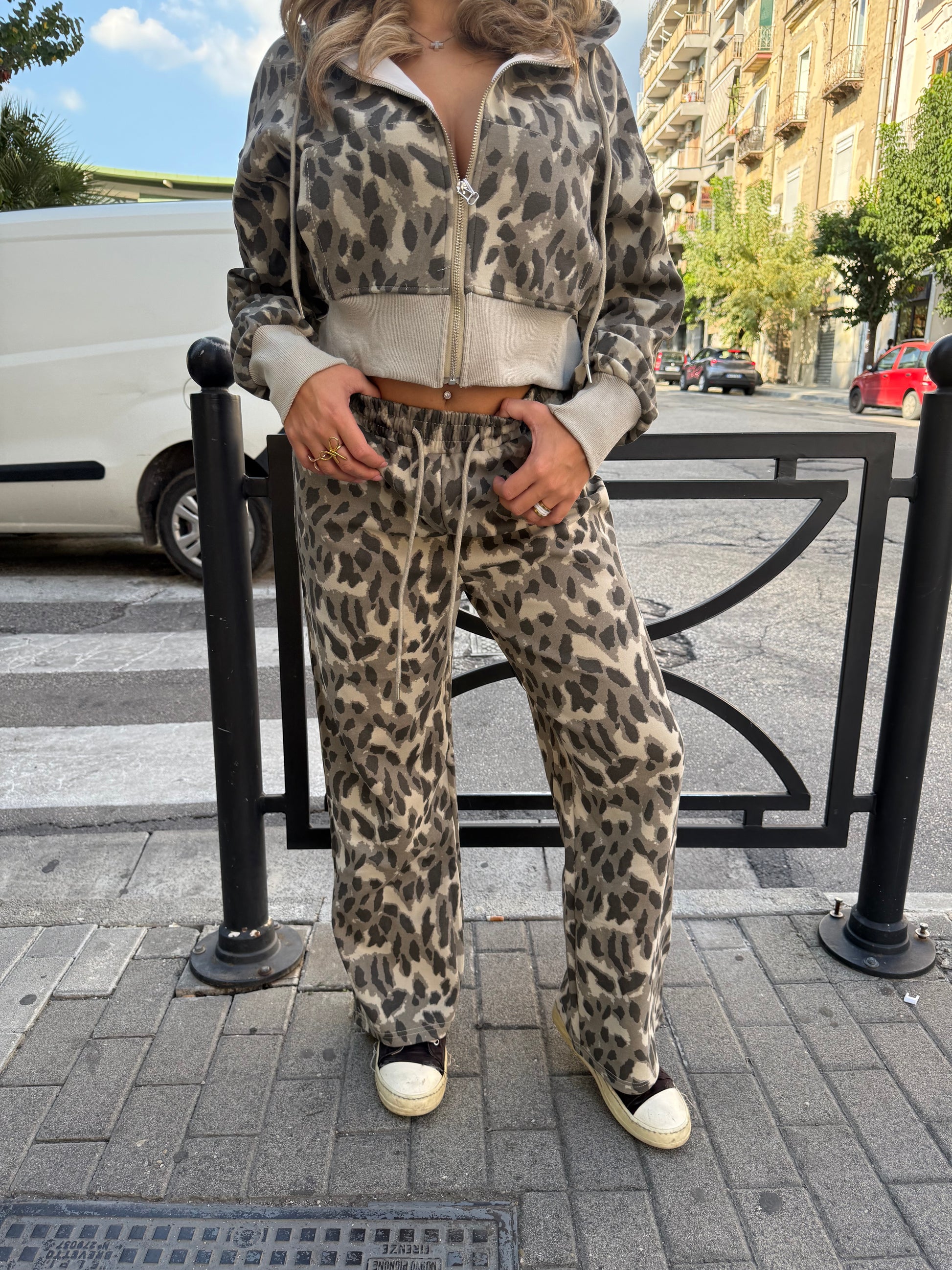 9114, coordinato tuta composto da felpa e pantatuta con fantasia leopardata