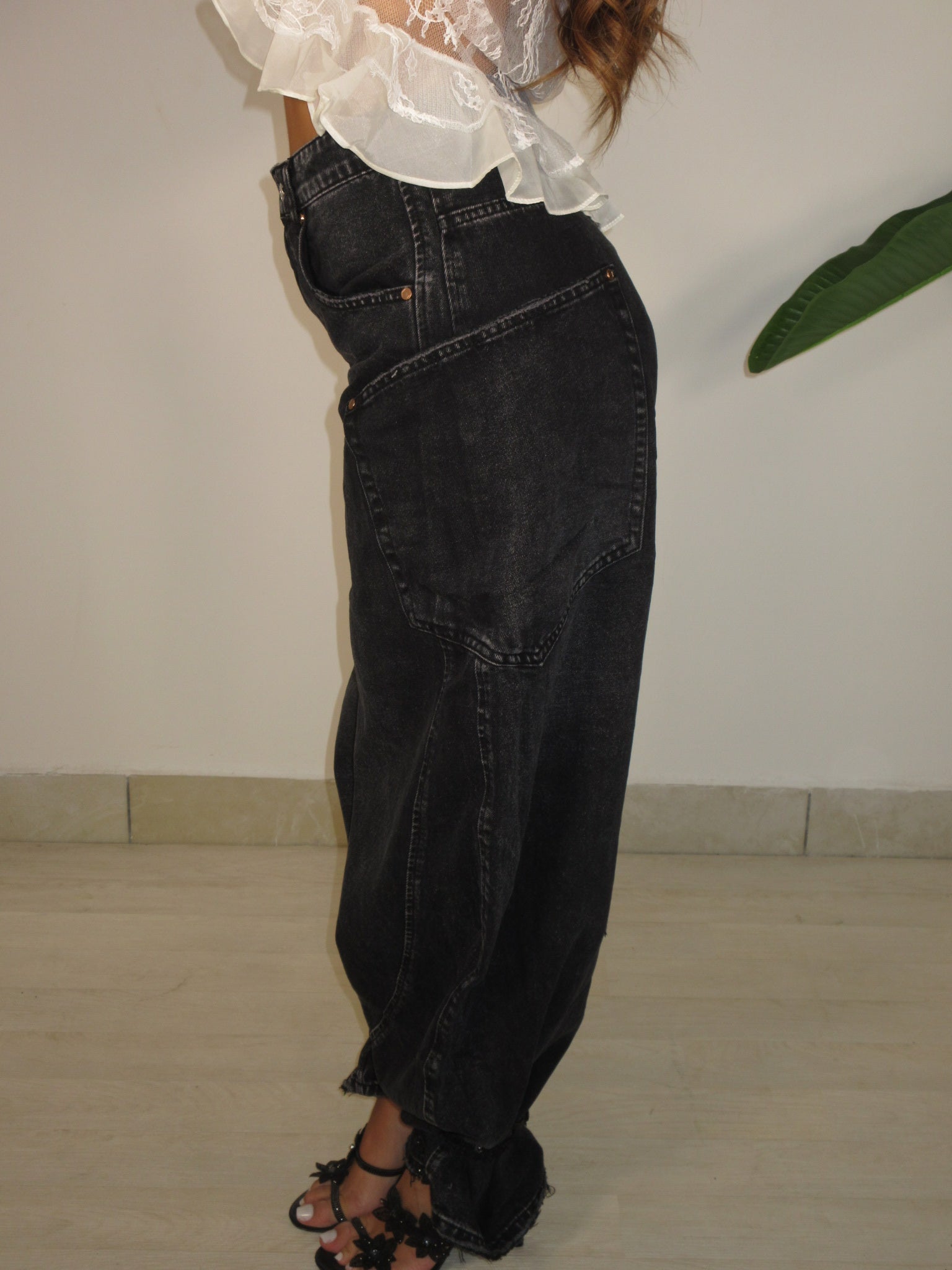 H3911, jeans con tasconi lavaggio nero