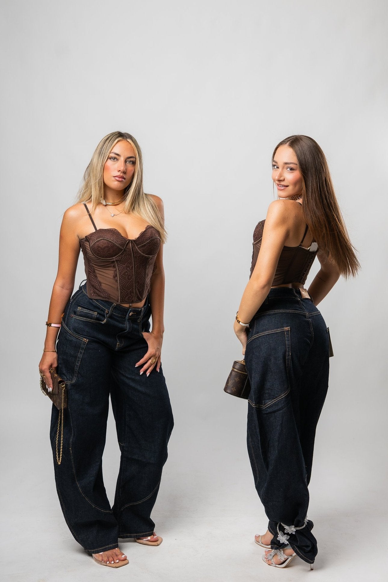 3912 ,jeans lavaggio scuro con tasche laterali e cuciture marroni