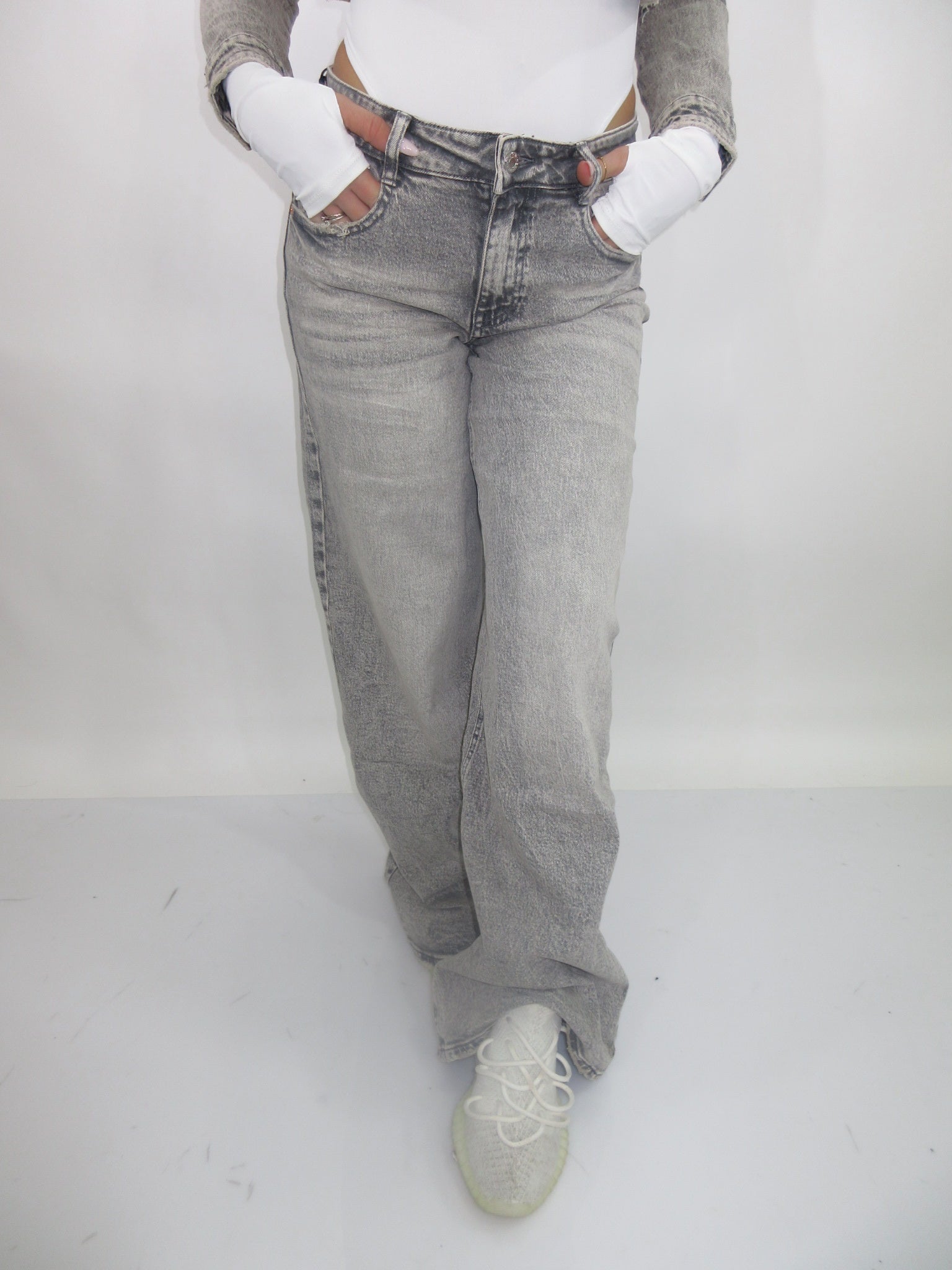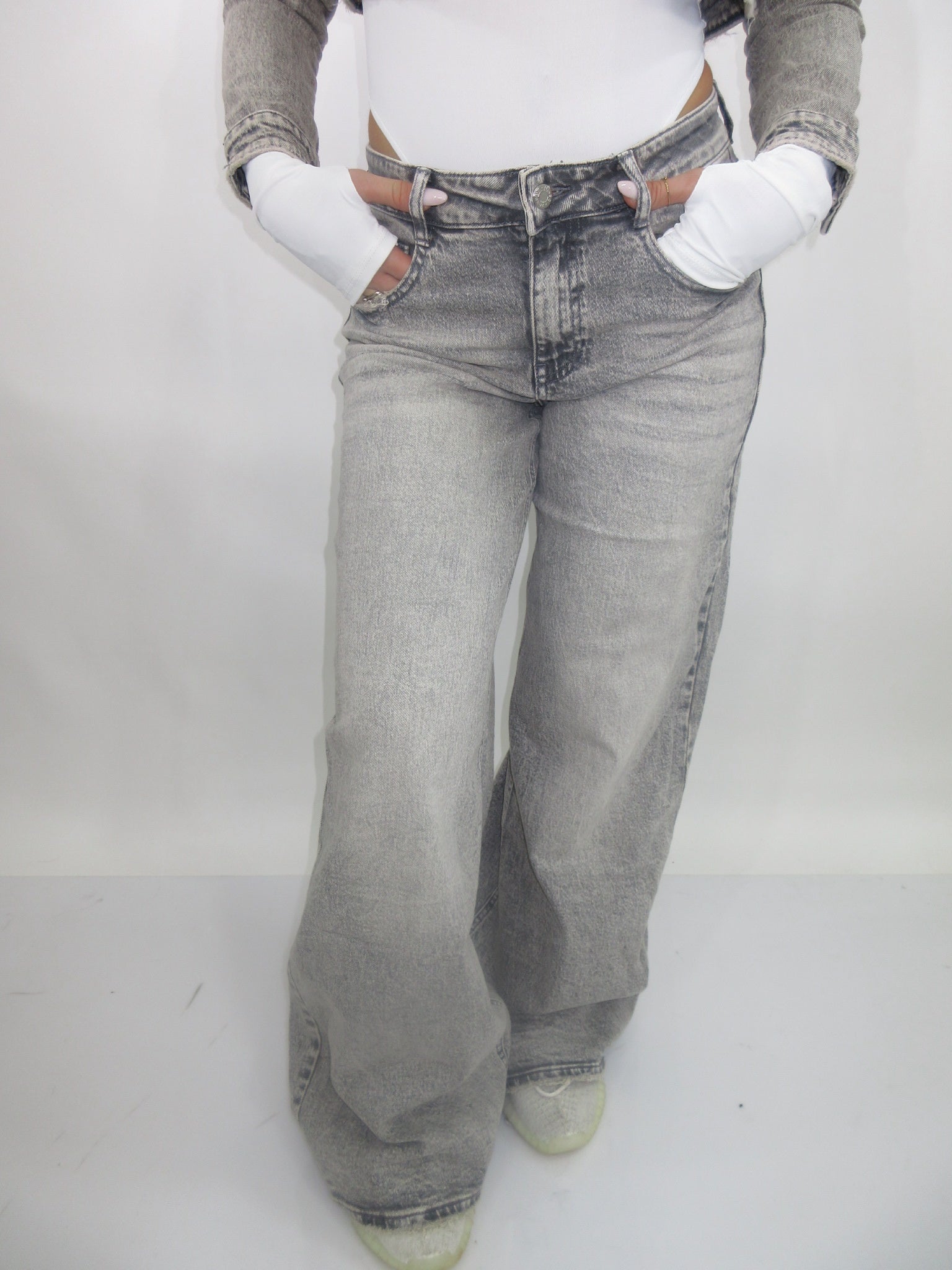 Jeans wide leg grigio chiaro