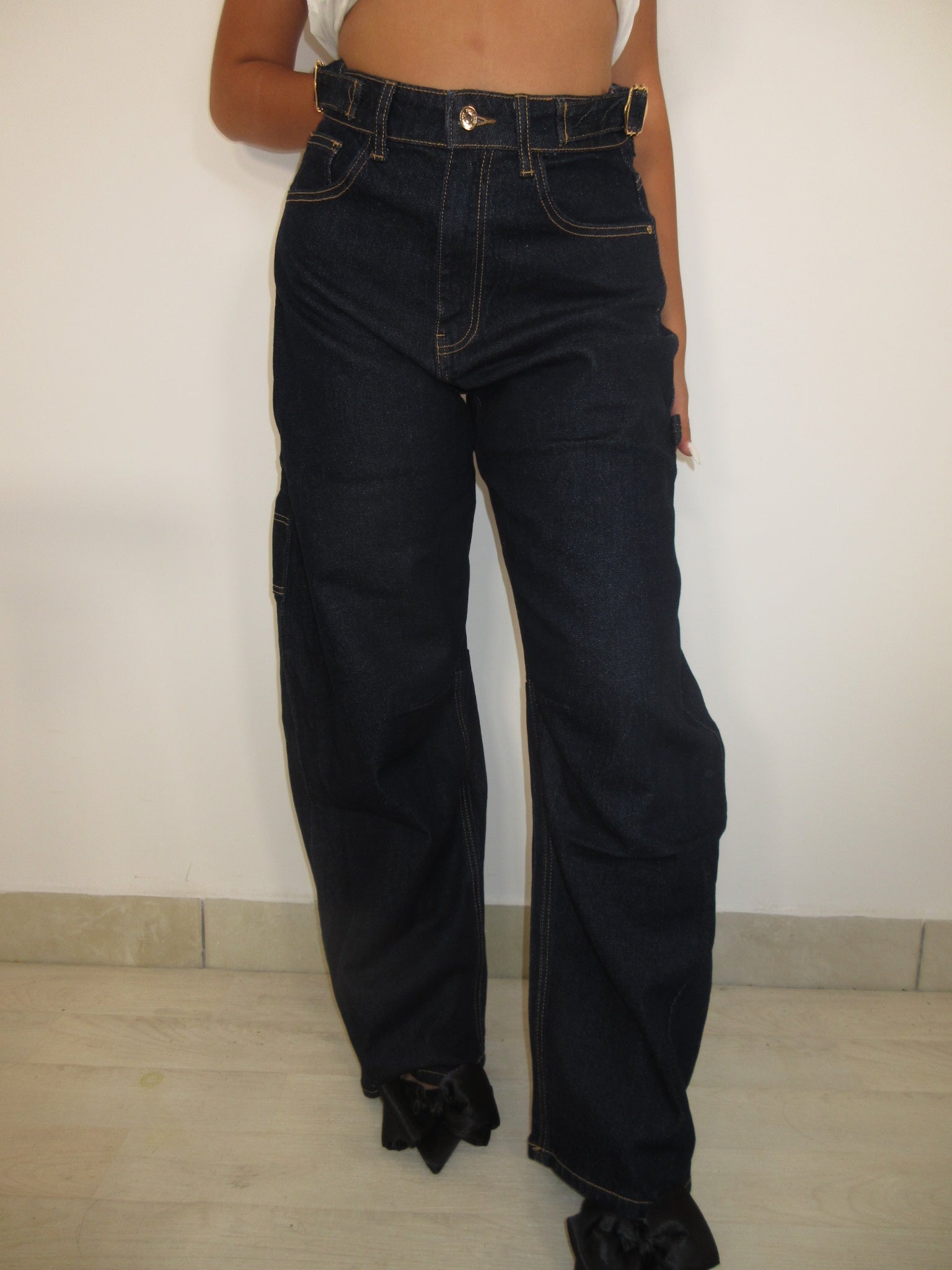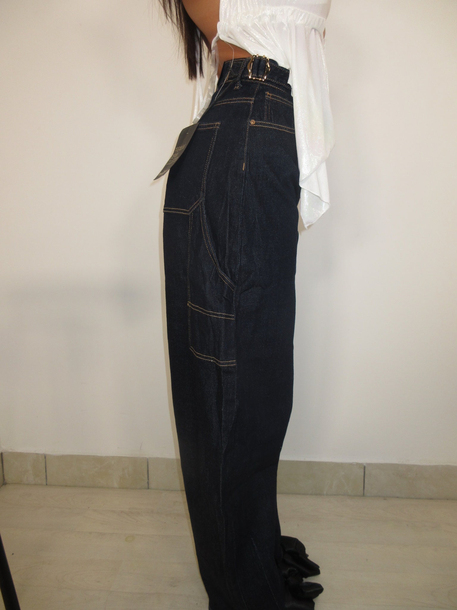 5039, jeans lavaggio scuro con cinturino in vita laterale